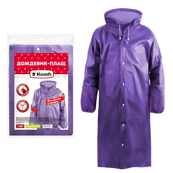 ул. Низпоташная, 7«З» | 89618190368 Дождевик-плащ на кнопках с капюшоном 80*120 см Komfi PVV666/25512 фиолетовый