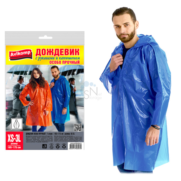 Дождевик-плащ на липущке с капюшоном 105*175 см особо прочный ПВД Avikomp 89079 ассорти