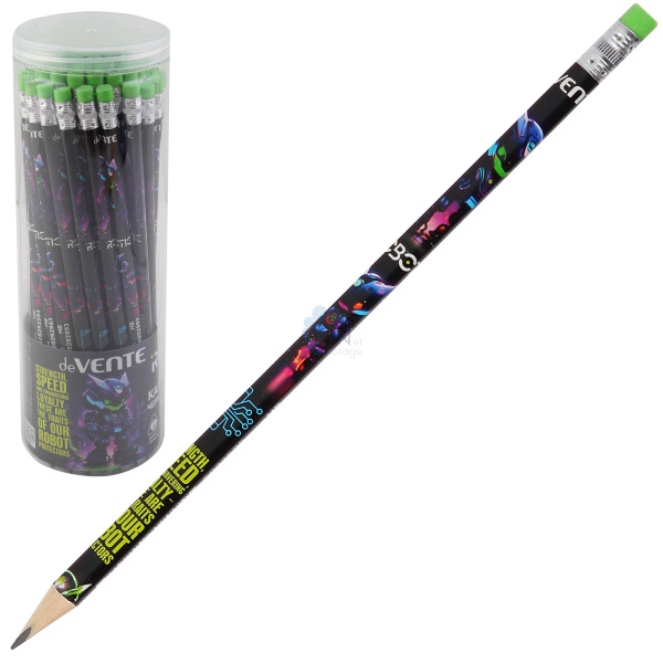 Карандаш НВ деревянный трехгранный заточенный с ластиком deVENTE Robotic 5032505