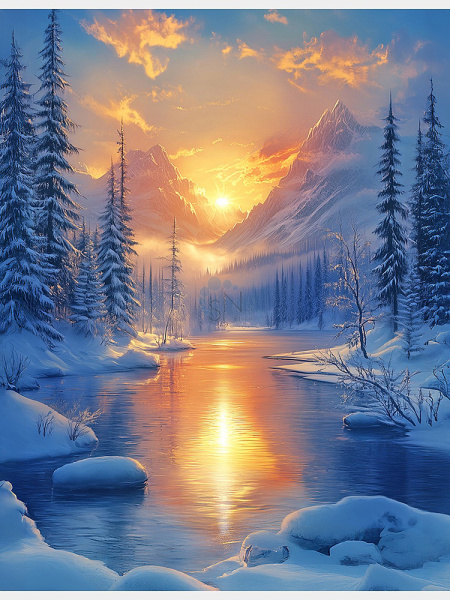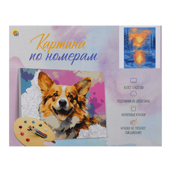 Картина по номерам 17*22 Рыжий кот Зимний горный пейзаж холст на подрамнике ХК-0477